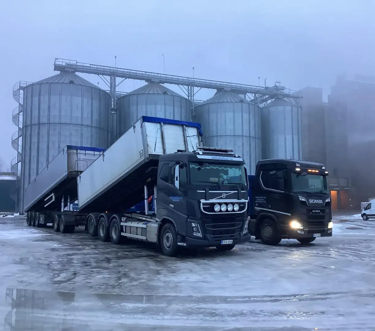 Nosturilla varustetulla kippaavalla rahtilavayhdistelmällä kuljetamme viljat, siemenet, lannoitteet, rakennustarvikkeet yms. Etelä- ja Länsi-Suomen alueella.